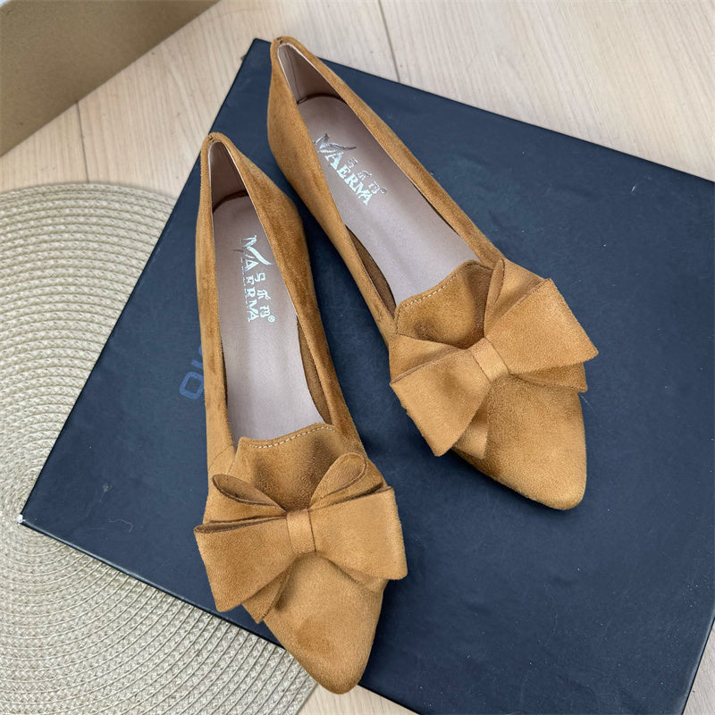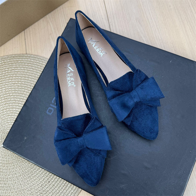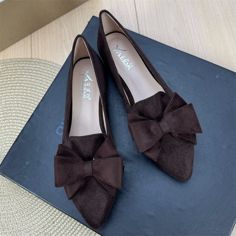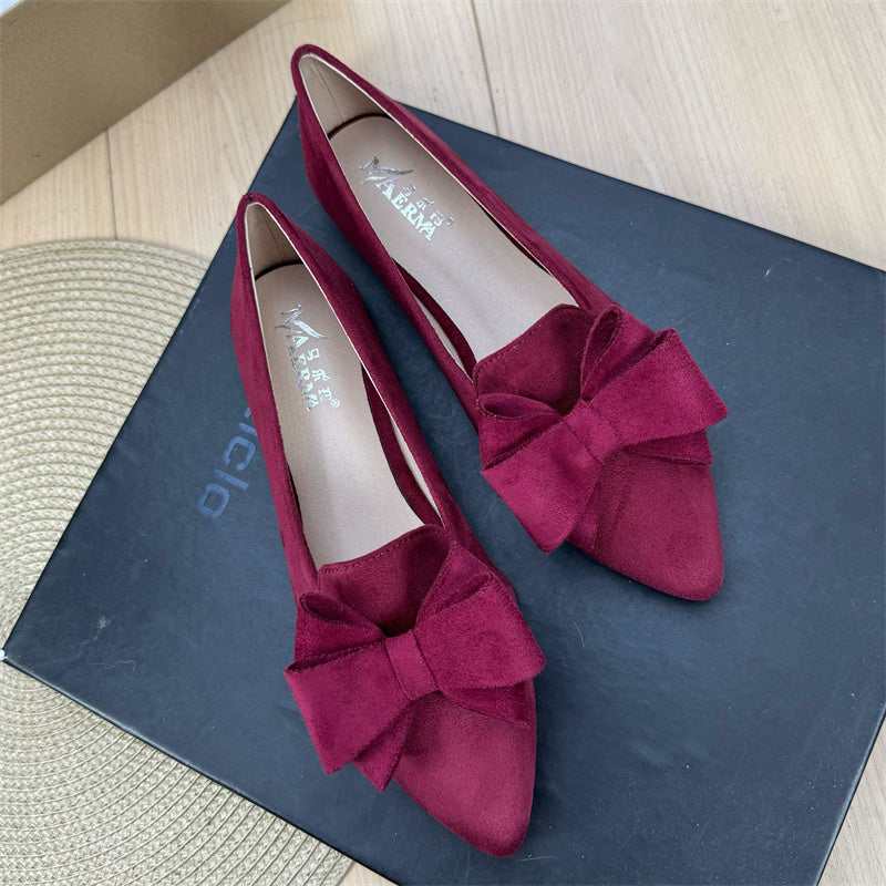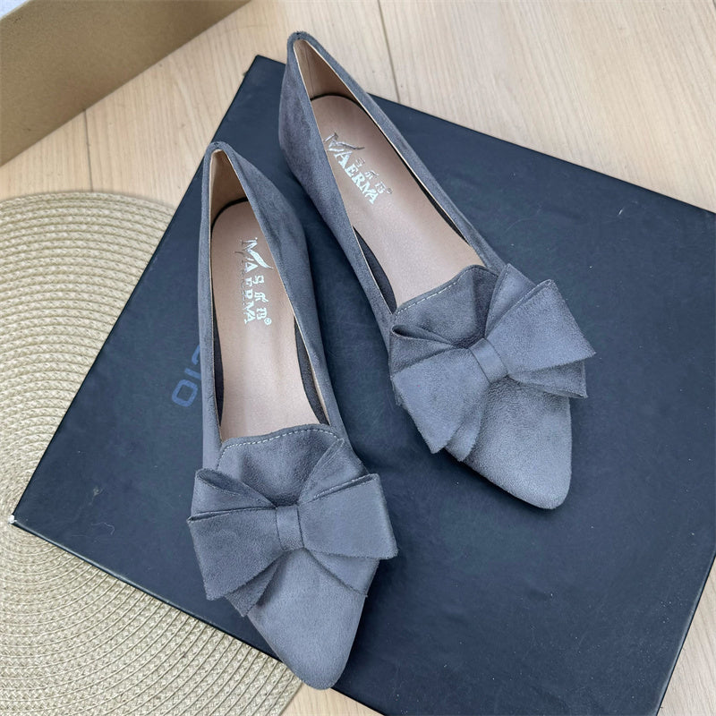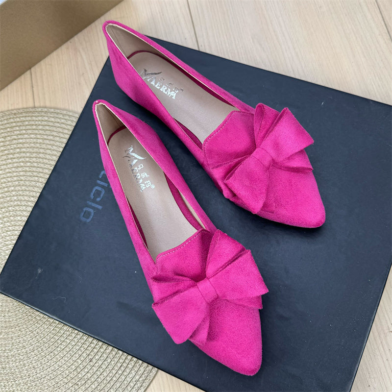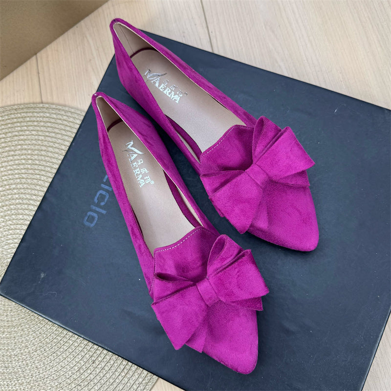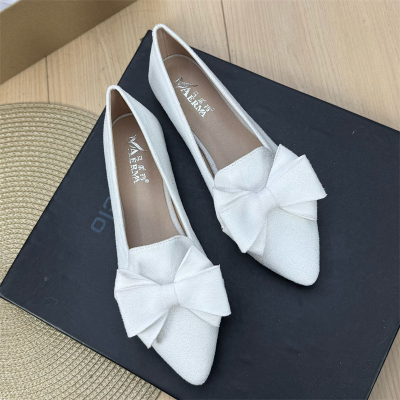 Mångsidiga enfärgade platta skor med rosett och spets för kvinnor