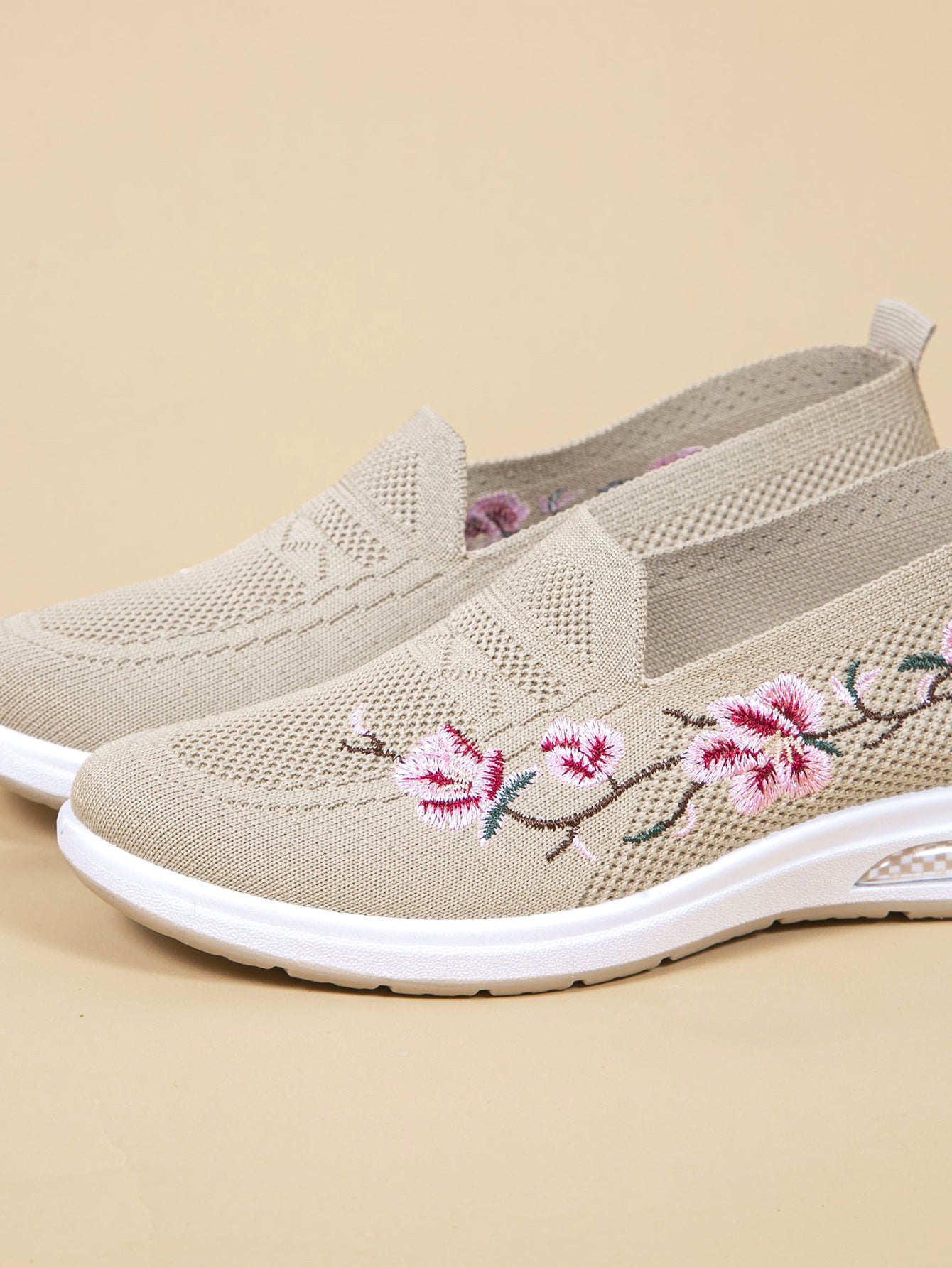 Damskor med andningsfunktion och mjuka sulor, moderiktiga broderier