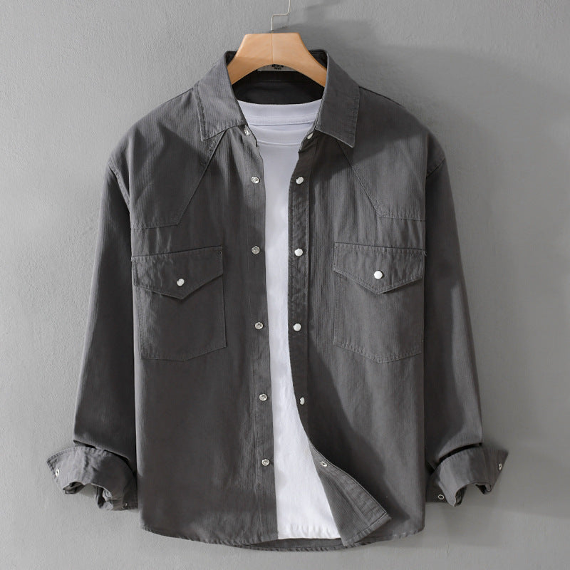 Avslappnad lös herrskjorta i retro-modell i enfärgad