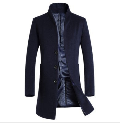 Moderiktig herrlång ullkappa med kontrasterande färger