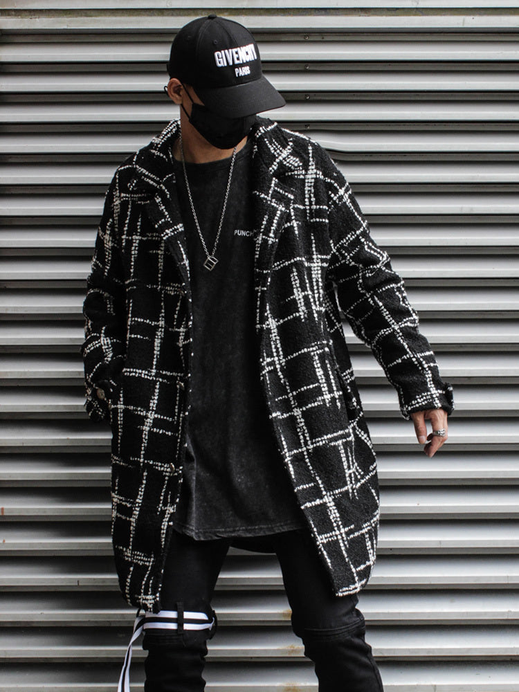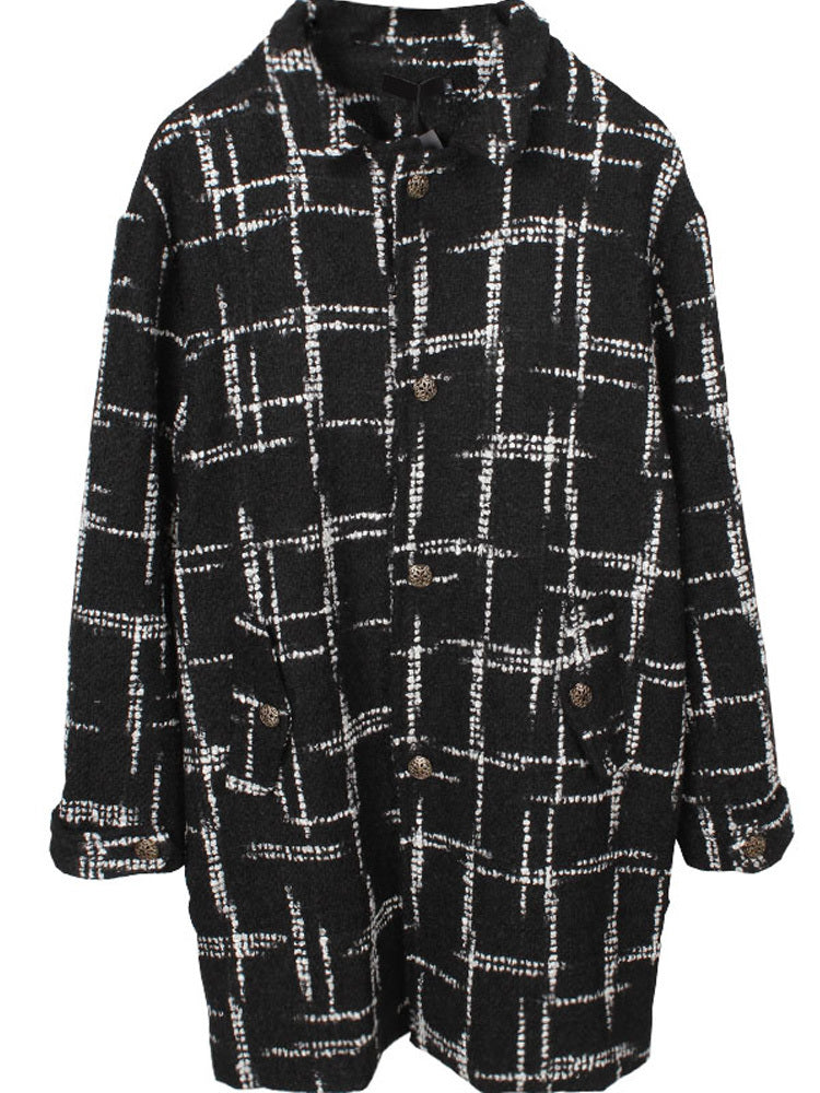 Svart rutig medellång vävd yllekappa för par