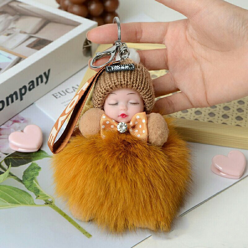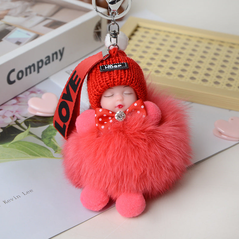 Söt sovande docka plyschdocka nyckelring hänge ryggsäck