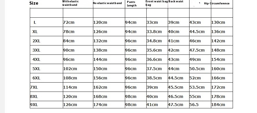 Storlek: L-kapell 2-maximalt stretch 80,00 cm midjemått, XL-kapell 2,4-maximalt stretch cm, 2XL-kapell 3,1-maximalt 116,67 cm midjemått, 3XL-kapell 3,6-maximalt midjemått 140,00 cm, 4XL-kapell 4-maximalt stretch 146,67 cm, 5XL-kapell 4,4-maximalt stretch 160,00 cm, 6XL-kapell 4,8-maximalt stretch 173,33 cm, 7X, 8X, 9X