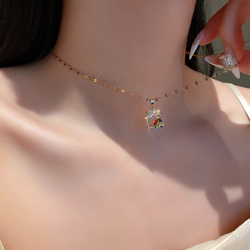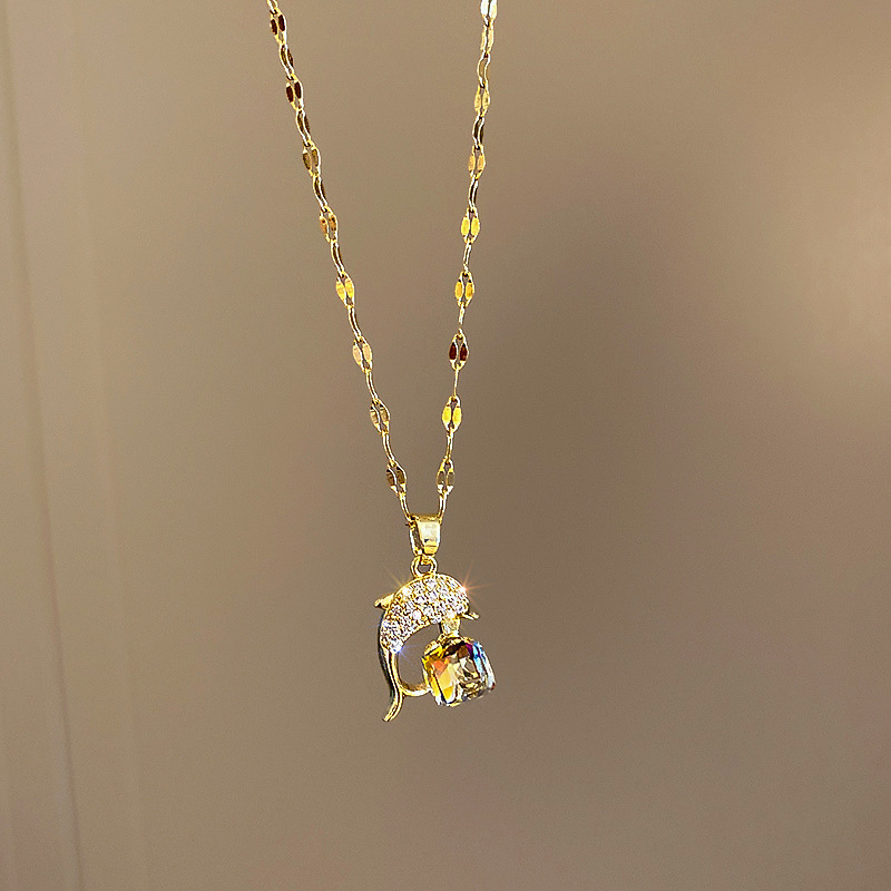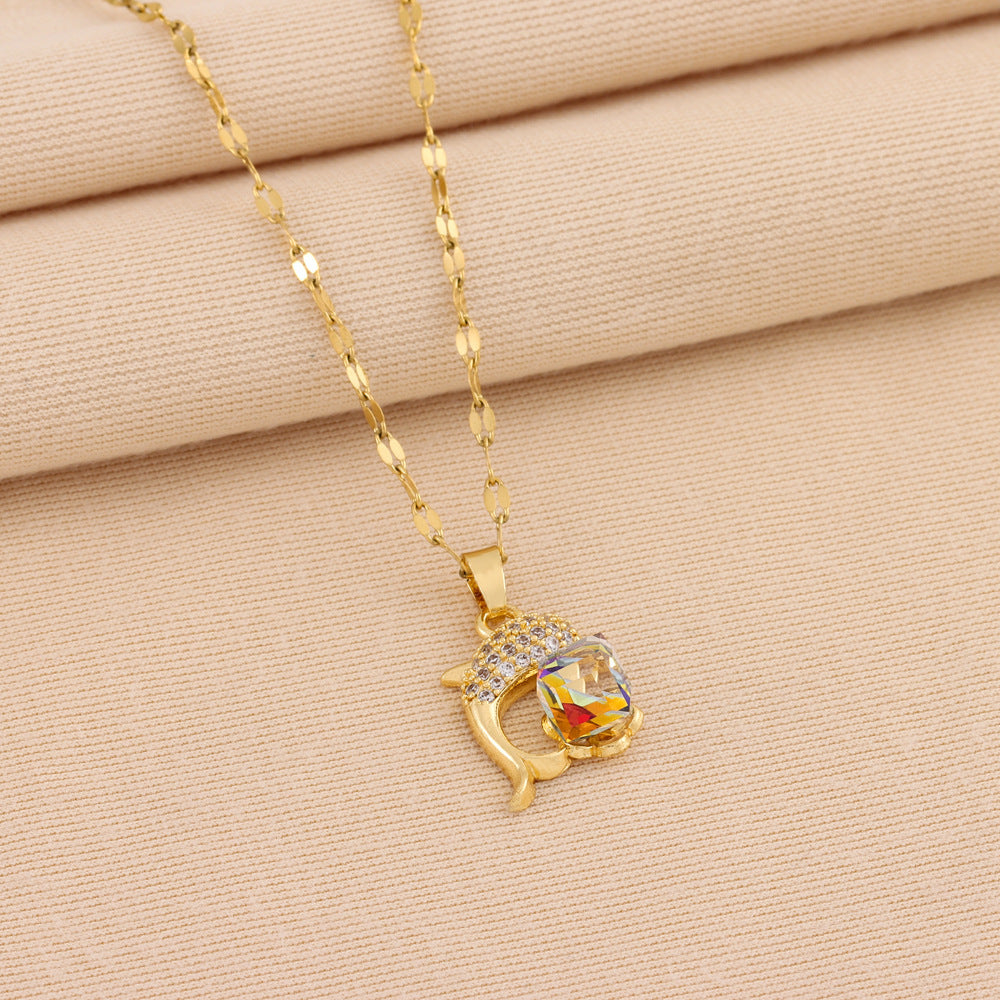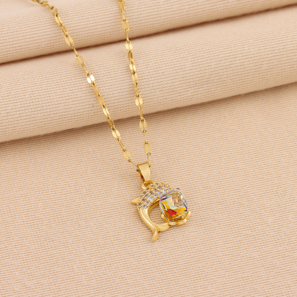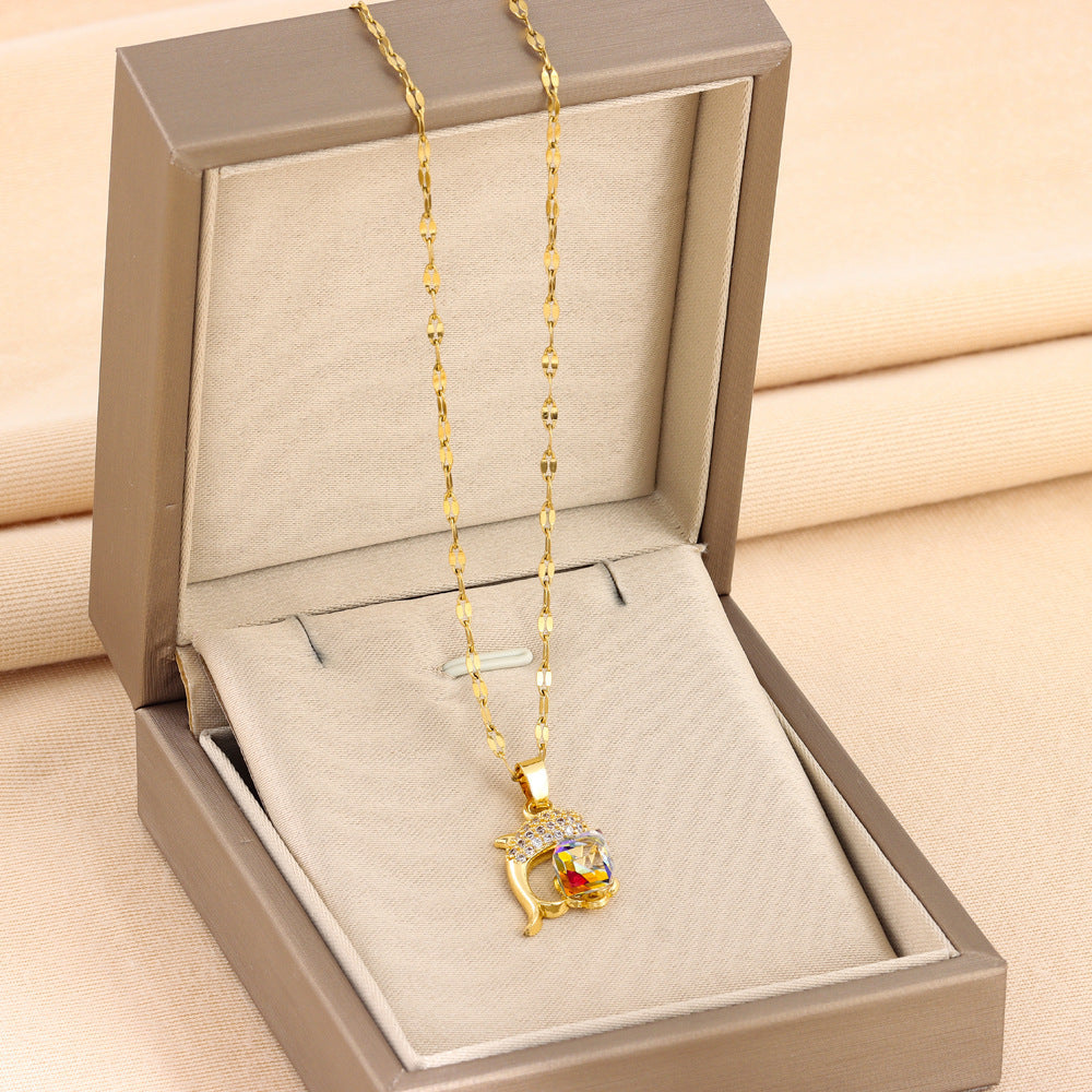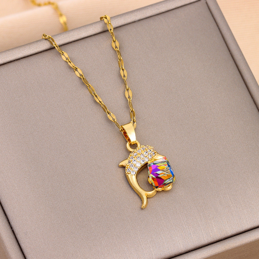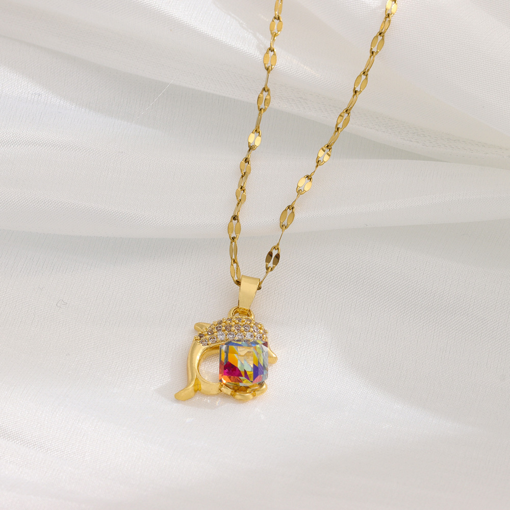 Halsband med förgyllt rostfritt stål och färgglada kristaller i kubform för kvinnor