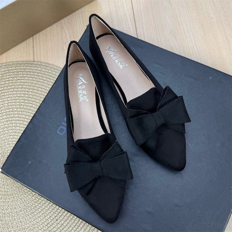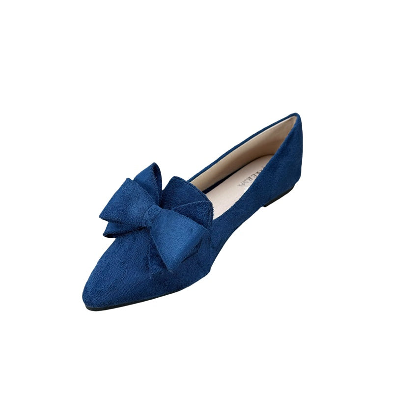 Mångsidiga enfärgade platta skor med rosett och spets för kvinnor